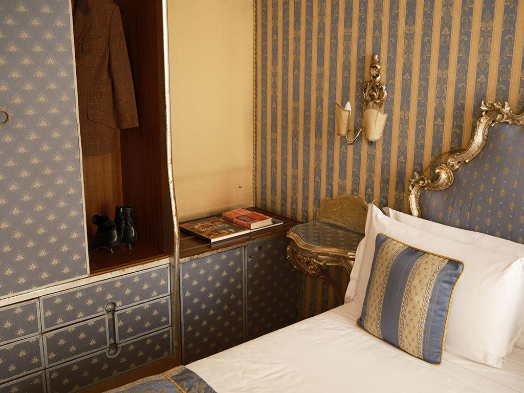 Gli ambienti accoglienti evocano lo stile veneziano tradizionale. Un confortevole letto matrimoniale e preziosi tessuti nei toni del blu e dell’oro. Mobili realizzati da maestri artigiani locali, raffinati lampadari in vetro di Murano e parquet in legno.